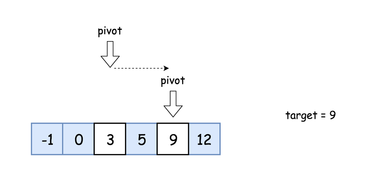 - target이 nums[pivot]보다 크면 left를 현재 pivot보다 1 큰 곳으로 변경 pivot 전까지 검색할 필요가 없음