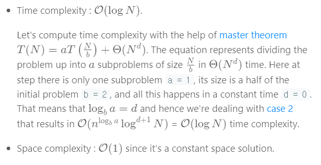 - 자세한 것을 알고 싶으면 master theorem을 참고하기 바란다. 머리가 아프면 굳이 몰라도 된다. binary search는 O(logN)이다만 알고 있으면 된다!