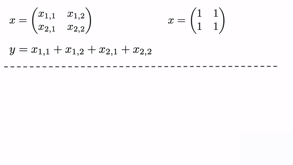 y는 x의 reduced_sum이기 때문에 모든 행렬의 인자를 더합니다.