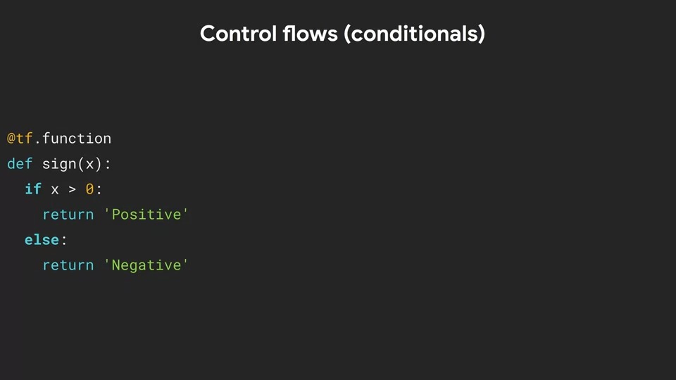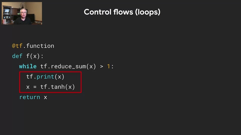 Eager 모드를 사용하면 표준 제어 흐름 구문으로 표준 Python 코드를 어느 정도 사용할 수 있습니다. 그러나 그래프가 제공하는 이점 중 일부를 잃게 됩니다.